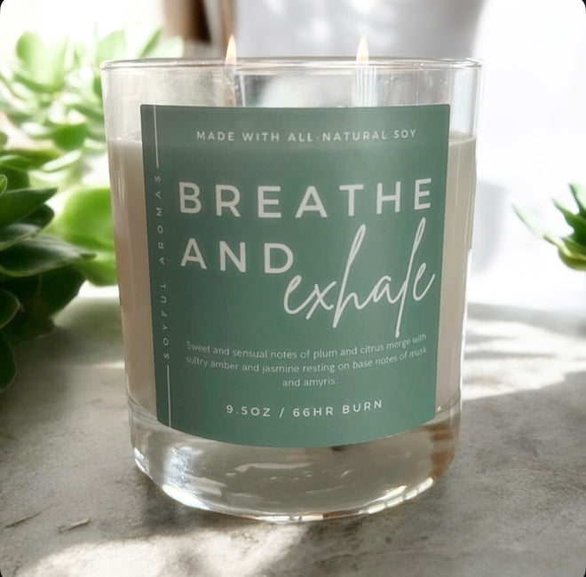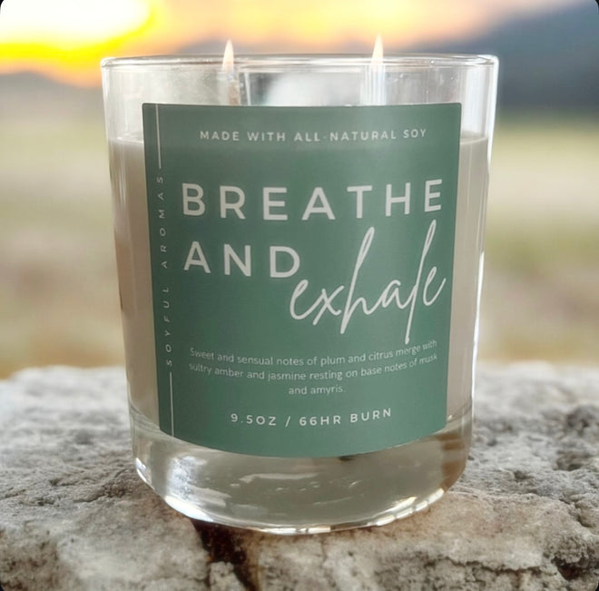 The process of self-care begins with taking a mindful breath: inhaling, and then exhaling. Breathing may seem trite, yet how often do we find ourselves holding our breath when faced with stress, anxiety, or overwhelming emotions? Our breathing mirrors the instability of our minds. This luxurious candle encourages a deep, mindful breath and exhale to calm and center the mind.