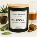 Release the tension and recharge with DISCONNECT. Let this luxuriously scented candle envelop your senses in lavish indulgence, with top notes of palm and aloe leading to an oak and leather heart, kissed by patchouli. A lingering base of smoke, vanilla, and opulent whiskey adds to the sensory experience. Immerse yourself in this intricately designed candle, offering a soothing atmosphere and a captivating blend of spices.